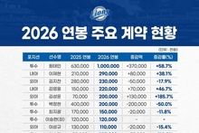 TSN KOREA 장우혁 기자 | 프로야구 삼성 구단은 원태인을 포함한 2026시즌 재계약 대상 선수 68명의 연봉 계약 결과를 공식 발표했다. 삼성 라이온즈의 토종 에이스 원태인이 2026시즌 연봉 10억원에 계약하며 KBO리그 정상급 대우를 받게 됐다. 원태인은 2025시즌 12승 4패, 평균자책점 3.24를 기록하며 삼성 선발진의 중심 역할을 수행했다. 이에 따라 지난 시즌 연봉 6억3천만원에서 3억7천만원이 인상된 10억원에 재계약을 체결했다. 이번 계약으로 원태인은 한화 이글스 내야수 노시환과 함께 KBO리그 8년 차 최고 연봉 기록을 새로 썼다. 종전 기록은 강백호(한화 이글스)가 kt wiz 소속 시절 받았던 7억원이었다. 2019년 나란히 데뷔한 원태인과 노시환은 2026시즌 종료 후 자유계약선수(FA) 자격을 얻게 된다. 두 선수가 FA 자격 취득 이전에 타 구단으로 이적할 경우, 새 소속팀은 원소속팀에 연봉의 300%에 해당하는 최대 30억원의 보상금을 지급해야 한다. 이는 리그 내 핵심 선수 유출을 둘러싼 구단 간 부담이 더욱 커졌음을 의미한다. 삼성과 한화는 각각 원태인과 노시환을 장기적으로 묶기 위한 다년 계약도 병행 추진 중이다. 핵