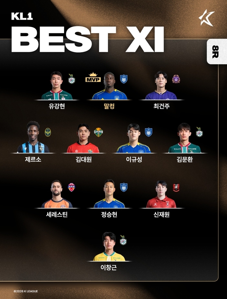 미드필더에는 제르소(인천), 김대원(강원), 이규성(울산), 김문환(대전)이 선정됐다.