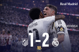TSN KOREA 김민제 기자 | 레알 마드리드는 8일(현지시간) 사우디아라비아에서 열린 '스페인 슈퍼컵(수페르코파 데 에스파냐)' 준결승에서 아틀레티코 마드리드를 2-1로 꺾고 결승에 올랐다. 앞서 바르셀로나가 아틀레틱 빌바오를 5-0으로 제압하며 결승에 선 가운데, 슈퍼컵 마지막 무대는 스페인 프리메라리가의 최대 라이벌전으로 치러지게 됐다. 경기 시작 1분 만에 승부가 흔들렸다. 레알 마드리드는 전반 1분 프리킥 상황에서 페데리코 발베르데가 강력한 오른발 슈팅으로 골문을 열었다. 얀 오블락 골키퍼가 손을 쓸 수 없는 완벽한 궤적이었다. 레알은 이른 선제골로 경기 흐름을 안정적으로 가져갔다. 후반 초반 레알의 추가골이 나왔다. 후반 9분 발베르데의 침투 패스를 받은 호드리구가 수비를 따돌린 뒤 침착한 마무리로 2-0을 만들었다. 아틀레티코는 곧바로 반격에 나섰고, 후반 12분 알렉산데르 쇠를로트의 헤더 골로 한 점을 만회했다. 이후 경기는 아틀레티코의 공세와 레알의 버티기가 이어졌다. 훌리안 알바레스는 경기 막판 결정적인 기회를 맞았지만 골문을 벗어나며 동점에 실패했다. 레알은 티보 쿠르투아의 선방과 수비진의 집중력으로 리드를 지켜냈다. 레알은 승리와 함께