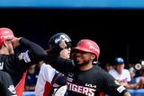 TSN KOREA 임재현 기자 | 한국 프로야구 KIA 타이거즈의 새 외국인 타자 해럴드 카스트로(Harold Castro)가 오키나와 첫 실전 경기에서 강렬한 한 방을 터뜨리며 기대감을 높였다. 카스트로는 24일 일본 오키나와현 가데나 구장에서 열린 2026 월드베이스볼클래식(WBC) 대비 한국 야구대표팀과의 연습경기에 4번 지명타자로 선발 출전했다. 1회초 2사 2루에서 대표팀 선발 고영표를 상대로 우월 투런 홈런을 쏘아 올렸다. 0-0으로 맞선 1회, 볼카운트 2볼에서 들어온 높은 공을 번개 같은 스윙으로 받아쳤다. 타구는 그대로 오른쪽 담장을 넘어갔다. 정교한 제구력을 자랑하는 고영표를 상대로 만들어낸 장타라는 점에서 의미가 컸다. 경기 후 카스트로는 “2볼에서 좋은 공이 들어올 것이라 생각했고, 좋은 타구가 나왔다”고 말했다. 이어 “지난해 트리플A에서 뛸 때와 기술적으로 크게 달라진 점은 없다. 같은 방식으로 준비하고 있다”고 덧붙였다. 카스트로는 올 시즌을 앞두고 KIA 유니폼을 입었다. 메이저리그(MLB)에서 6시즌 통산 450경기에 출전해 타율 0.278, 16홈런, 156타점을 기록했다. 빅리그에서는 장타력이 두드러진 유형은 아니었지만, 지
