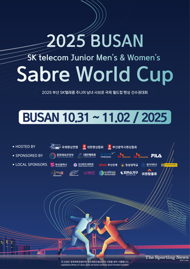 TSN KOREA 스포팅뉴스 (The Sporting News Korea) 장도연 기자 | 대한펜싱협회는 오는 31일부터 11월 2일까지 부산 경성대학교 체육관에서 ‘부산 SK텔레콤 주니어 남녀 사브르 월드컵’ 대회를 개최한다고 29일 밝혔다.