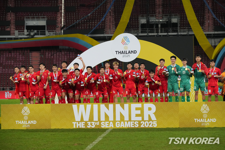 베트남 23세 이하 대표팀은 18일 오후(한국시간) 태국 방콕 라자망갈라 스타디움에서 열린 2025 동남아시안게임 남자 축구 결승에서 태국을 연장 끝에 3-2로 꺾고 우승을 차지했다.