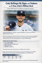 뉴욕 양키스, '코디 벨린저'와 재계약 확정...5년 1억6천250만달러 자유계약