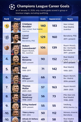 UEFA 챔피언스리그 득점 기록의 역사…시즌 최다· 통산 최다· 레전드 선수들