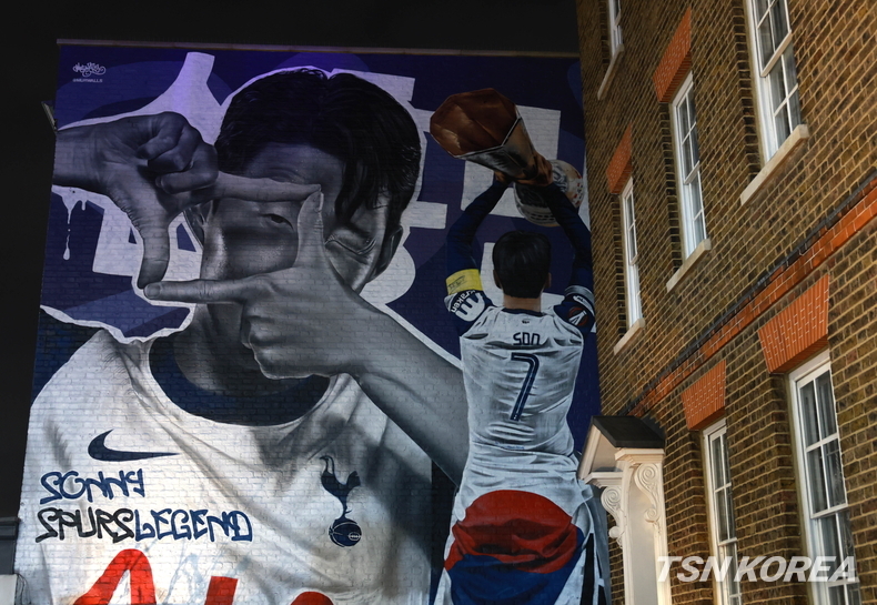 토트넘 구단은 손흥민의 방문을 사전 공지하며 감사의 의미를 담아 토트넘 하이로드 건물 벽면에 ‘찰칵 세리머니’와 유로파리그 우승 장면을 담은 벽화를 선물로 제작했다.