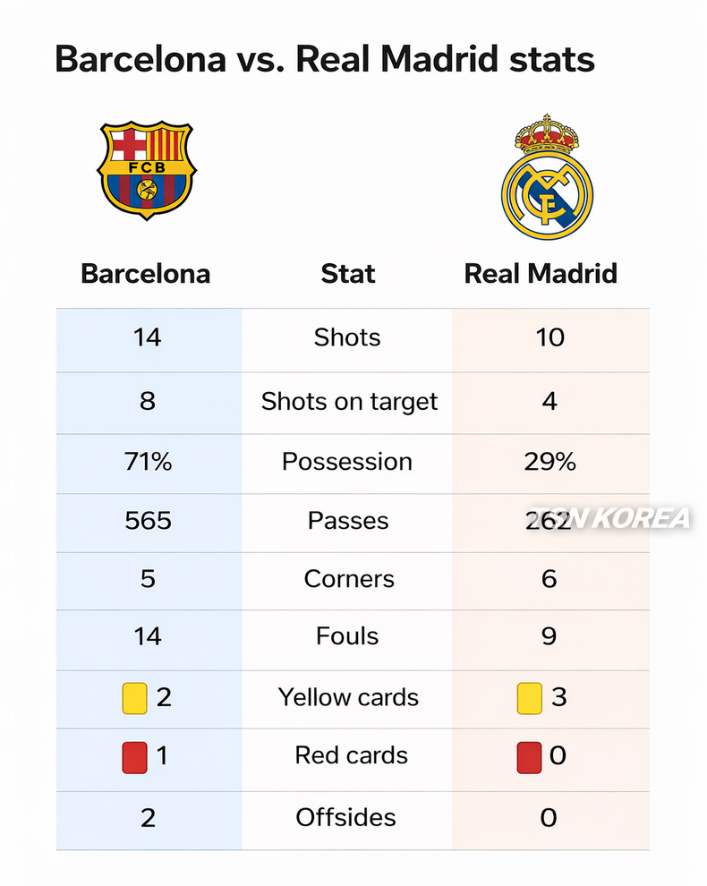 엘 클라시코 특유의 긴장감 속에서 바르셀로나는 경기 내내 주도권을 유지하며 결정적 순간마다 한 수 위의 집중력을 보여줬다.