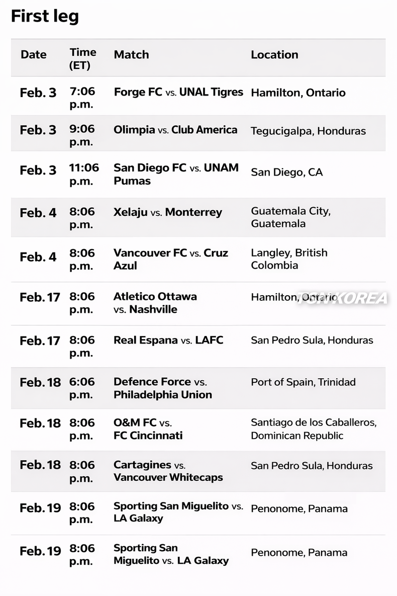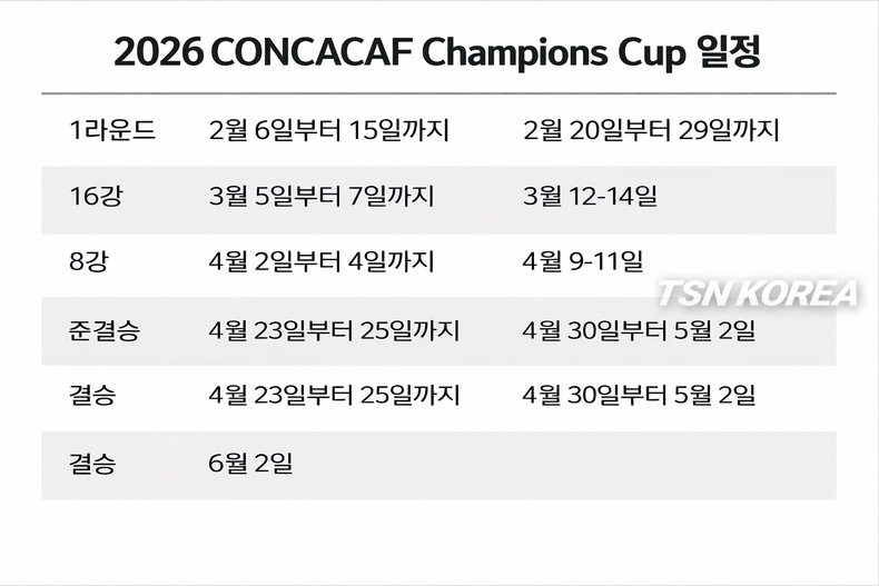 ■ 2026 CONCACAF 챔피언스 컵 경기 세부 일정