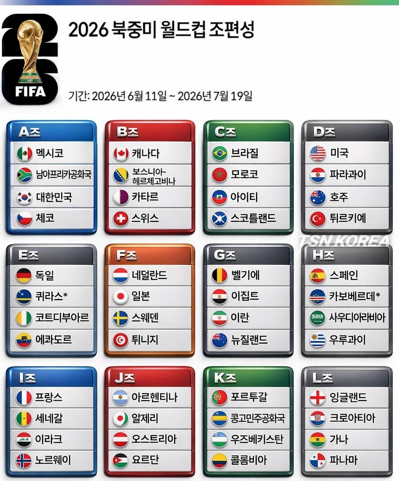 TSN KOREA 임재현 기자 | 2026 북중미 월드컵이 사상 처음으로 48개국 체제로 치러지는 가운데, 본선에 나설 모든 참가국이 최종 확정됐다.