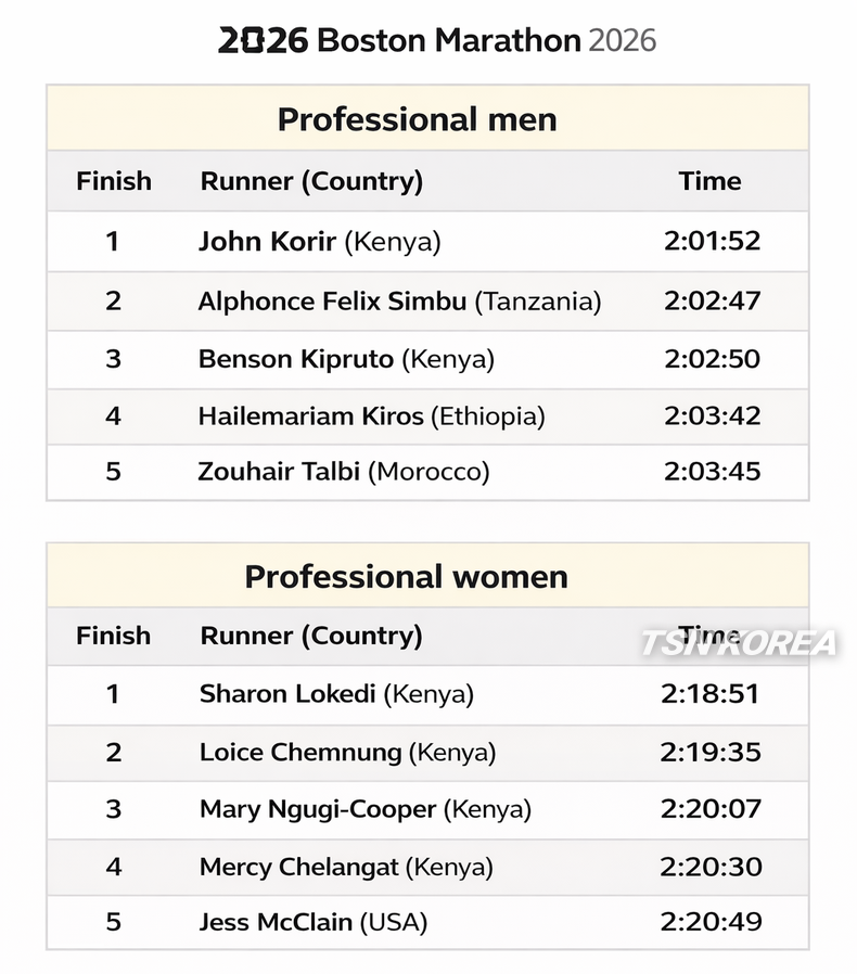 여자부도 케냐의 강세가 이어졌다. 로케디는 지난해 우승에 이어 다시 한 번 보스턴 정상에 오르며 대회 대표 강자로 자리매김했다.