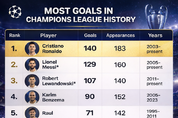 TSN KOREA 박영우 기자 | 유럽축구연맹(UEFA) 챔피언스리그는 수많은 명승부와 함께 시대를 대표하는 골잡이들을 배출해왔다. 대회 역사 속에서 기록된 득점 수치는 선수의 커리어를 평가하는 핵심 지표로 자리 잡았다. 챔피언스리그 통산 최다 득점 1위는 크리스티아누 호날두다. 호날두는 맨체스터 유나이티드, 레알 마드리드, 유벤투스 소속으로 대회를 누비며 총 140골을 기록했다. 결승 토너먼트와 빅매치에서의 결정력이 그의 기록을 더욱 상징적으로 만든다. 2위는 리오넬 메시다. 메시는 FC바르셀로나와 파리 생제르맹에서 활약하며 통산 129골을 넣었다. 경기 조율 능력과 득점을 동시에 겸비한 플레이로 챔피언스리그 역사에 깊은 족적을 남겼다. 3위는 로베르트 레반도프스키다. 레반도프스키는 2024년 11월 26일 챔피언스리그 통산 100골 고지를 넘으며 호날두와 메시 이후 세 번째 ‘100골 클럽’ 가입자가 됐다. 특히 보루시아 도르트문트, 바이에른 뮌헨, FC바르셀로나에서 모두 해트트릭을 기록한 유일한 선수로 이름을 올렸다. 다만 레반도프스키가 상위 두 명을 추월하기 위해서는 커리어 후반까지 장기간 득점 행진을 이어가야 하는 상황이다. 현실적으로 격차는 여전히