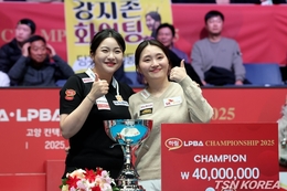 TSN KOREA 장우혁 기자 | 여자 프로당구 LPBA에서 강지은(SK렌터카)이 4년 만에 우승 트로피를 들어 올렸다. 결승전 마지막 순간 ‘키스샷’이 득점으로 이어지는 극적인 장면이 나오며 시즌 첫 우승을 확정했다. 강지은은 6일 경기 고양 킨텍스 PBA 스타디움에서 열린 하림 PBA-LPBA 챔피언십 결승전에서 김민아(NH농협카드)를 세트 점수 4-3으로 꺾었다. 초반 3세트를 연달아 따내며 일찌감치 우승을 눈앞에 뒀으나 김민아가 3세트를 연달아 만회해 승부는 풀세트로 이어졌다. 운명의 7세트에서 두 선수는 13이닝까지 치열한 접전을 이어갔다. 강지은이 먼저 8점을 채웠으나 김민아가 8-8을 만들며 균형을 맞췄다. 마지막 공격 기회에서 강지은이 시도한 대회전 샷이 키스가 났음에도 득점으로 연결되며 경기가 종료됐다. 극적인 마무리였다. 이번 우승으로 강지은은 통산 세 번째 LPBA 우승을 기록했다. 2021-2022시즌 이후 4년 14일 만의 정상 복귀이며, 우승 상금 4천만원을 더해 누적 상금 1억2천481만원을 넘어 ‘1억원 클럽’에 가입했다. 강지은은 초기 PBA 원년 멤버로 두 차례 우승을 기록했지만 최근 세 시즌 동안 우승이 없어 갈증을 겪었다.
