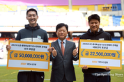 TSN KOREA 스포팅뉴스 (The Sporting News Korea) 장도연 기자 | 지난 9월 도쿄에서 열린 세계육상선수권대회 남자 높이뛰기에서 은메달을 획득한 우상혁(용인시청)이 대한육상연맹으로부터 5천만원의 포상금을 받았다. 20일 부산 아시아드주경기장에서 열린 제106회 전국체육대회 육상 경기 현장에서 포상금 및 장학금 수여식이 진행됐다. 이날 행사에서 우상혁과 함께 김도균 용인시청 감독도 2천250만원의 포상금을 받았다. 두 사람은 "대한육상연맹의 꾸준한 지원 덕분에 좋은 성적을 거둘 수 있었다"며, "포상금을 받게 되어 매우 기쁘다. 전국체전 경기를 부상 없이 잘 마무리하고, 내년 아시안게임도 최선을 다해 준비하겠다"고 소감을 밝혔다. 대한육상연맹은 또한 청소년 육상영재로 선정된 7명에게 각 500만원씩 장학금을 전달했다. 이번 장학금은 개인 및 기업 후원, 연맹 임원 릴레이팀의 기부로 마련됐으며, 올해 국제대회에서 메달을 획득하거나 국내외 대회에서 한국 신기록을 경신한 선수들에게 지급된 포상금은 총 8억원, 육상영재에게 지급된 장학금은 7천만원에 달한다고 연맹은 밝혔다. 이번 장학금 수여 대상자에는 임예서(대구유가초), 김지아(포항원동초),