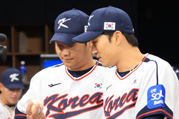 TSN KOREA 스포팅뉴스 (The Sporting News Korea) 이성재 기자 | 대한민국 야구 국가대표팀의 주장 박해민과 문보경이 4일 서울 고척스카이돔에서 열린 대표팀 훈련에 참석했다. 최근까지 한국시리즈에서 한화 이글스의 김서현과 치열하게 맞섰던 LG 트윈스 박해민은, 이제 대표팀 동료가 된 김서현을 따뜻하게 격려했다. 박해민은 훈련 후 가진 인터뷰에서 김서현에 대한 질문을 받고 "워낙 좋은 능력을 갖춘 선수"라며 "큰 선수가 되려면 지난 일보다는 앞으로의 과제를 하나씩 해결하는 것이 더 중요하다"고 조언했다. 김서현은 한국시리즈 4차전에서 9회초 박동원에게 투런 홈런을 허용하고, 박해민에게 볼넷을 내준 뒤 마운드를 내려갔고, 결국 LG가 역전승을 거두며 시리즈 우승을 차지했다. 박해민은 "제가 조언할 입장은 아니지만, 선배로서 말하자면 대표팀에는 좋은 투수들이 많으니 서로 대화하고 노하우를 나누면 더 단단해질 수 있다"며 "성장통이 큰 만큼 더 많이 성장할 것"이라고 김서현을 격려했다. 대표팀 주장으로 선임된 박해민은 "잘하는 선수들만 모인 자리여서 내가 할 일이 있을까 생각했다"면서도, "주장의 무게감은 소속팀이나 대표팀에서 모두 똑같이 크