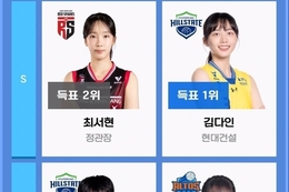 TSN KOREA 장우혁 기자 | 2025-2026 프로배구 올스타전 팬 투표가 시작된 가운데, 베테랑과 신예 선수들이 모두 주목받는 새로운 흐름이 나타나고 있다. 올스타전은 작년 1월 4일 개최 예정이었으나 전남 무안국제공항 제주항공 여객기 참사로 애도 행렬에 동참하고자 행사를 전격 취소하면서 2년 만에 다시 열리게 됐다. 이번 올스타전은 K-스타와 V-스타로 나뉘어 포지션별 최종 득표 순위에 따라 팀이 자동 구성된다. K-스타는 득표수를 기준으로 아포짓 스파이커 2위, 아웃사이드 히터 1, 4위, 세터 2위, 미들 블로커 1, 4위, 리베로 1위를 차지한 선수들이 한 팀을 이룬다. V-스타에서는 아포짓 스파이커 1위, 아웃사이드 히터 2, 3위, 세터 1위, 미들 블로커 2, 3위, 리베로 2위를 차지한 선수들이 한 팀이 된다. 팬 투표는 11일 시작됐으며, 팬 70%·선수단 15%·미디어 15% 비율로 최종 선발이 이뤄진다. 팬들은 1일 1회, 동일 구단 최대 3명까지 투표할 수 있다. 여자부에서는 현대건설로 이적한 베테랑 미들블로커 김희진이 가장 큰 주목을 받았다. 12일 오전 기준 3천289표로 부문 1위에 올라 IBK기업은행 최정민, 흥국생명 이다